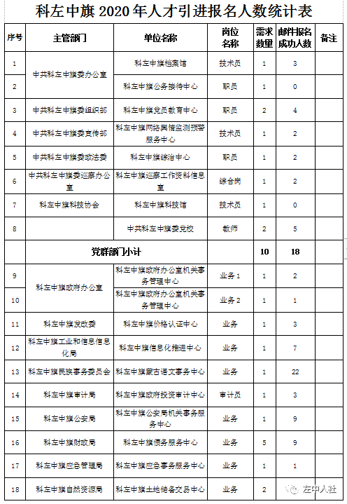 科左中旗2020年人才引進(jìn)工作領(lǐng)導(dǎo)小組辦公室