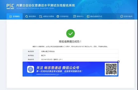 三、上傳照片要求照片必須是近期電子版紅色或藍(lán)色背景小二寸,照片比例為390×567,格式j(luò)pg。未上傳照片或照片不符合要求的不能參加測試(半身照、全身照、生活照或風(fēng)景照等均為不合格照片。人頭不宜過大或過小,照片清晰度要高)。符合要求提交后顯示報(bào)名成功。