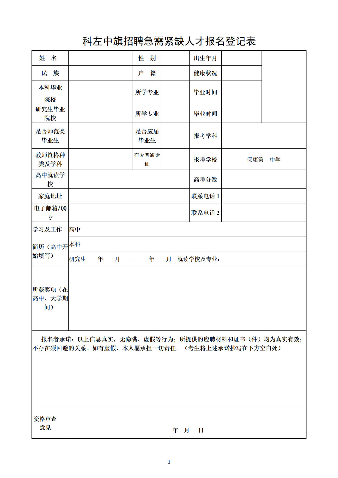 附件:科左中旗2022年“校園招聘”高層次學(xué)歷教師報(bào)名登記表