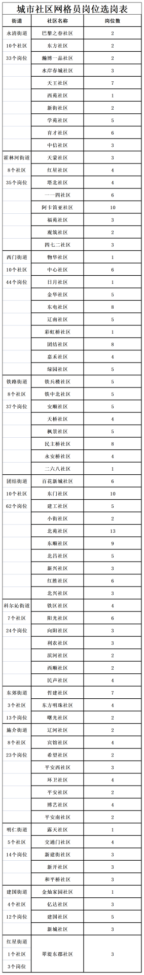 根據(jù)《科爾沁區(qū)公開(kāi)招聘城市社區(qū)網(wǎng)格員簡(jiǎn)章》的要求,現(xiàn)將科爾沁區(qū)公開(kāi)招聘城市社區(qū)網(wǎng)格員選崗有關(guān)事項(xiàng)公告如下: