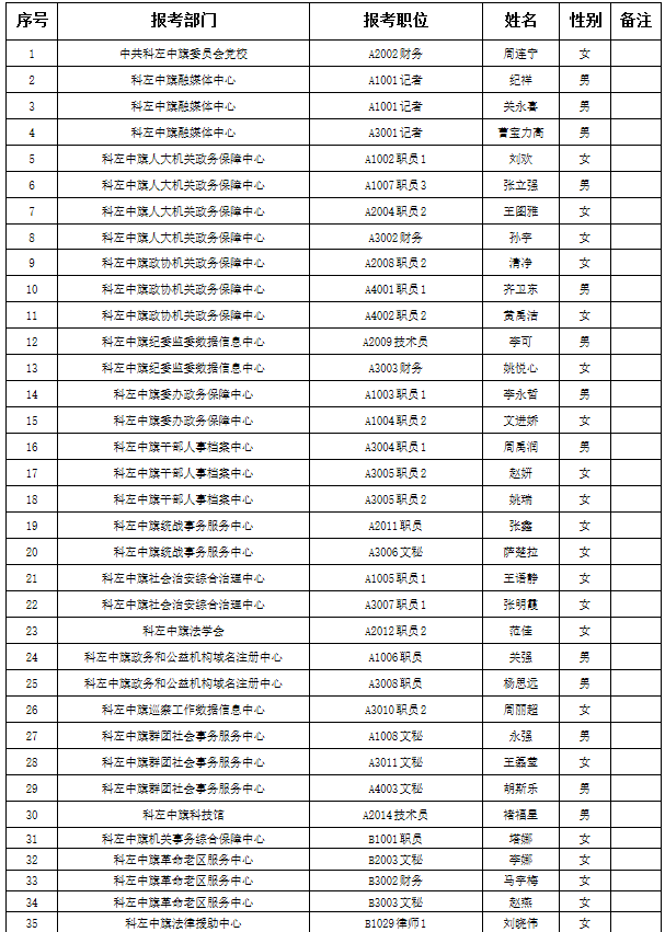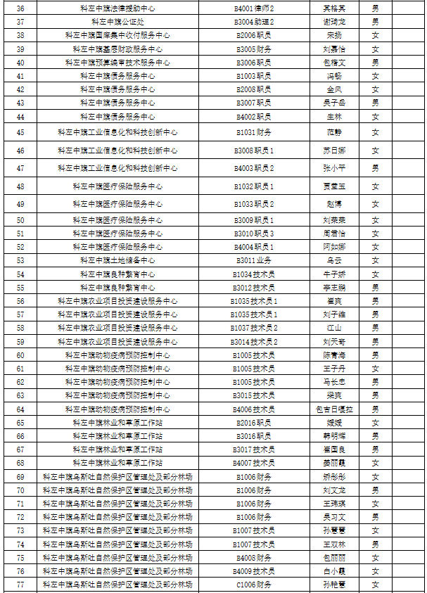 根據(jù)《科左中旗2021年度事業(yè)單位公開招聘工作人員簡章》要求,經(jīng)過報(bào)名、資格初審、筆試、資格復(fù)審、面試、體檢、考察等環(huán)節(jié),現(xiàn)對周連寧等122名擬聘用人員予以公示。公示時(shí)間為2022年8月29日至9月2日。公示期間如對公示情況有異議,請署名實(shí)事求是反映問題并提供必要的調(diào)查線索及相關(guān)證明材料。