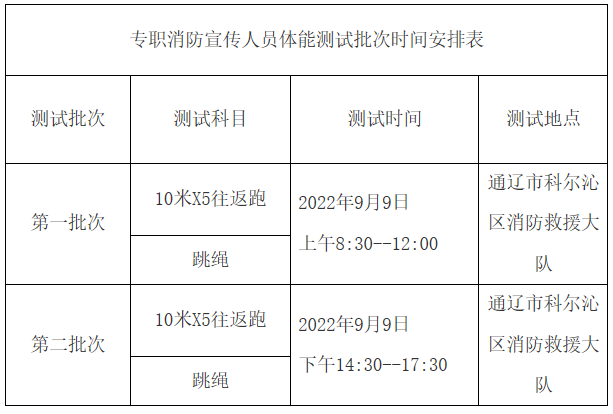 根據(jù)疫情發(fā)展形勢(shì),按照通遼市疫情防控指揮部最新要求,為避免人員聚集,維護(hù)考生切身利益,縮短考試整體時(shí)間,經(jīng)科爾沁區(qū)公開(kāi)招聘政府專(zhuān)職消防員工作領(lǐng)導(dǎo)小組研究,決定將科爾沁區(qū)2022年公開(kāi)招聘政府專(zhuān)職消防隊(duì)員、專(zhuān)職消防宣傳人員招聘程序進(jìn)行調(diào)整,即:提前進(jìn)行體能科目、心理科目測(cè)試,待測(cè)試結(jié)束后再進(jìn)行體格檢查。