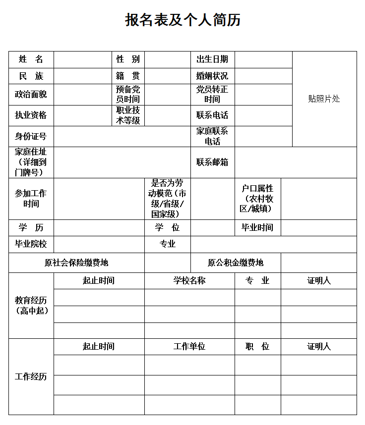 6.《12345政務(wù)服務(wù)便民熱線人員應(yīng)聘報(bào)名表》(以下簡稱《報(bào)名表及個(gè)人簡歷》)(見附件)