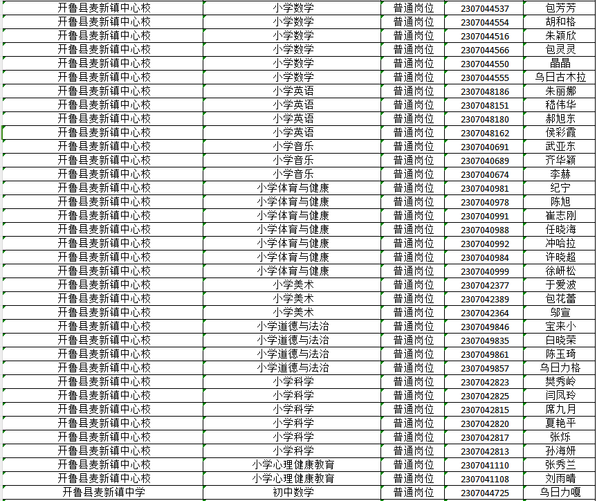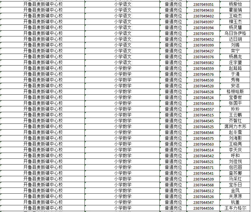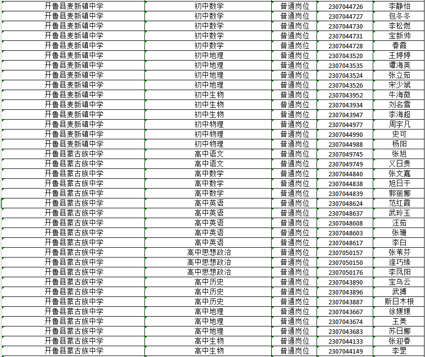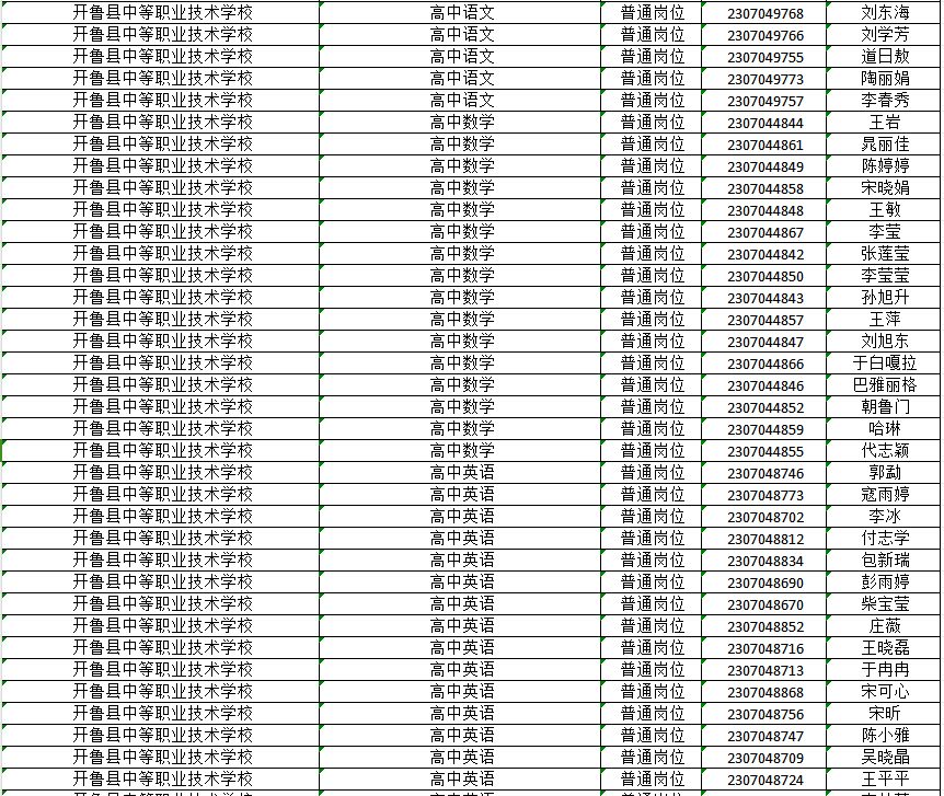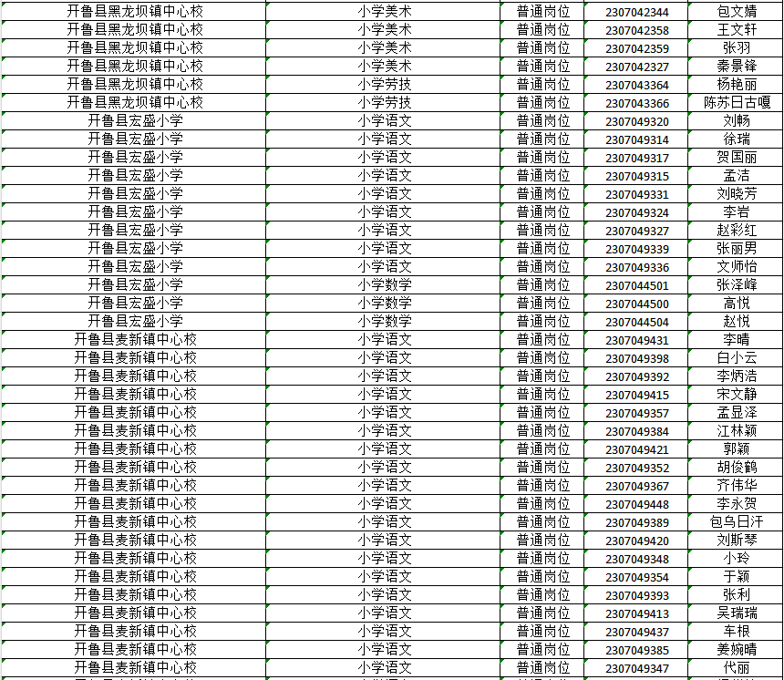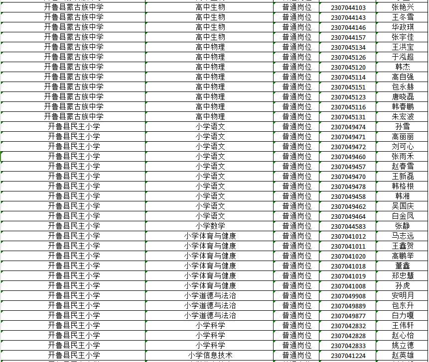 已通過2023通遼市教育系統(tǒng)公開招聘工作人員開魯縣崗位資格復(fù)審的人員(詳見名單)。
