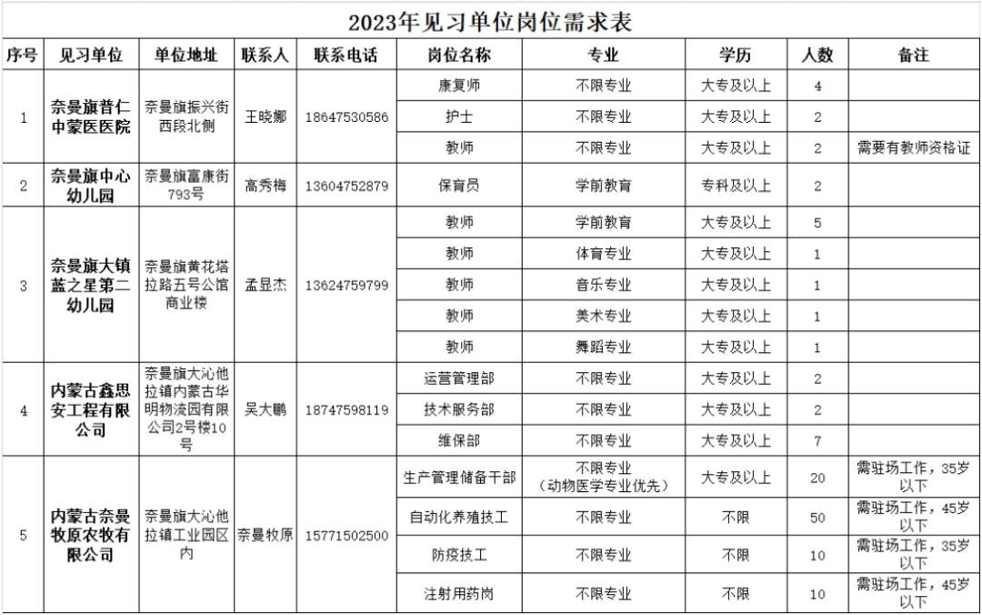 按照關(guān)于轉(zhuǎn)發(fā)《關(guān)于印發(fā)〈內(nèi)蒙古自治區(qū)進一步推進工作百萬就業(yè)見習崗位募集計劃工作方案〉的通知》的通知(通人社發(fā)〔2023〕124號)要求,幫助青年加強崗位實踐鍛煉、提升就業(yè)能力,結(jié)合各企業(yè)用工需求情況,決定公開招募青年見習人員,具體事宜公告如下: