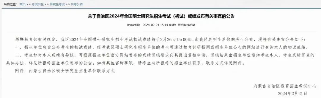 內(nèi)蒙古自治區(qū)考研成績查詢時(shí)間2月26日15:00!